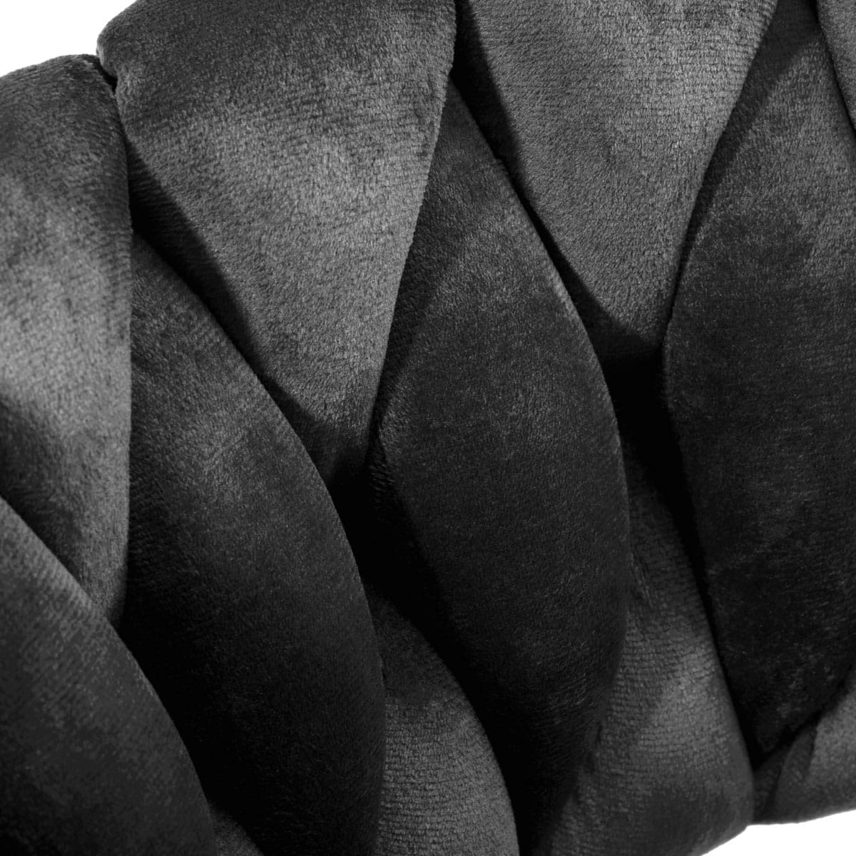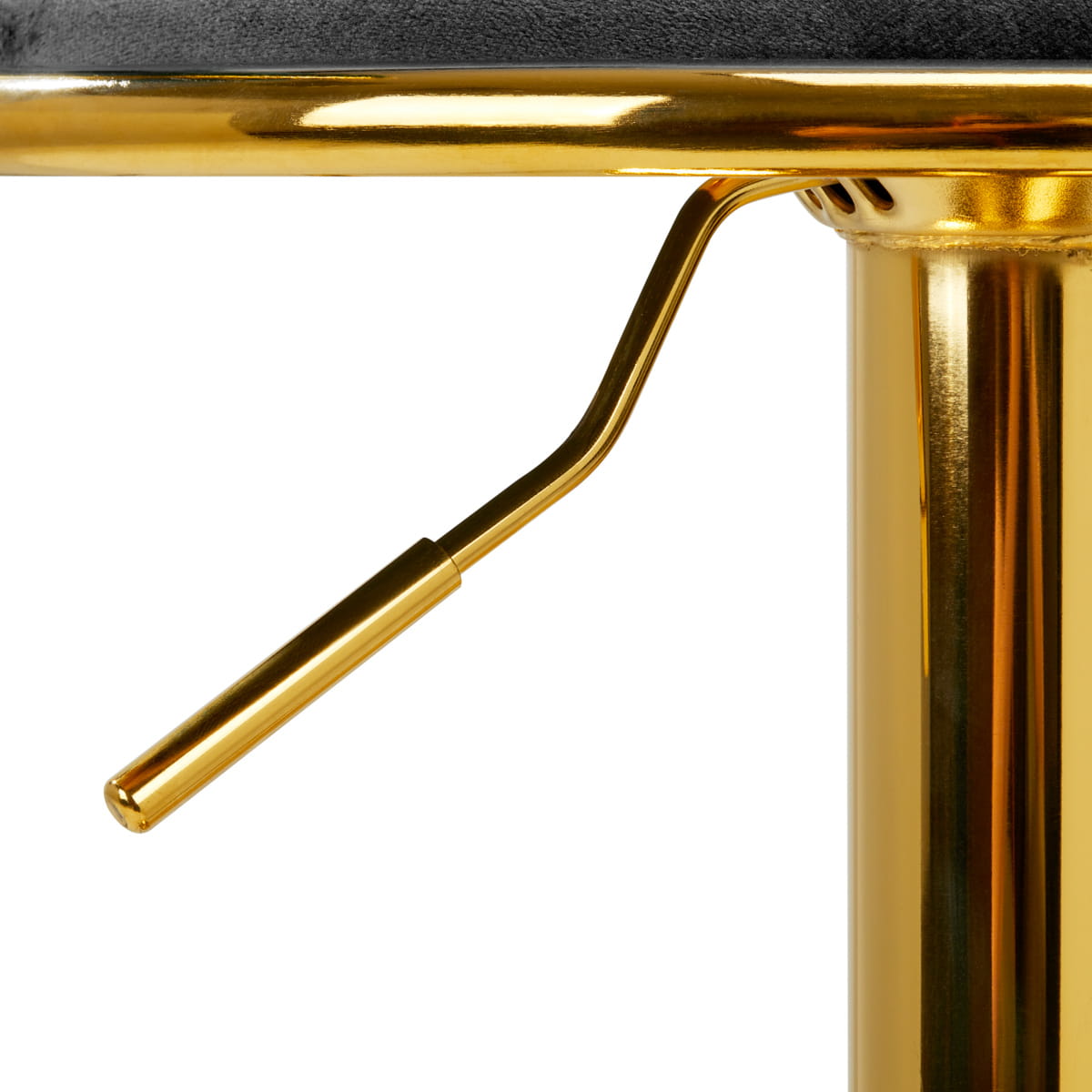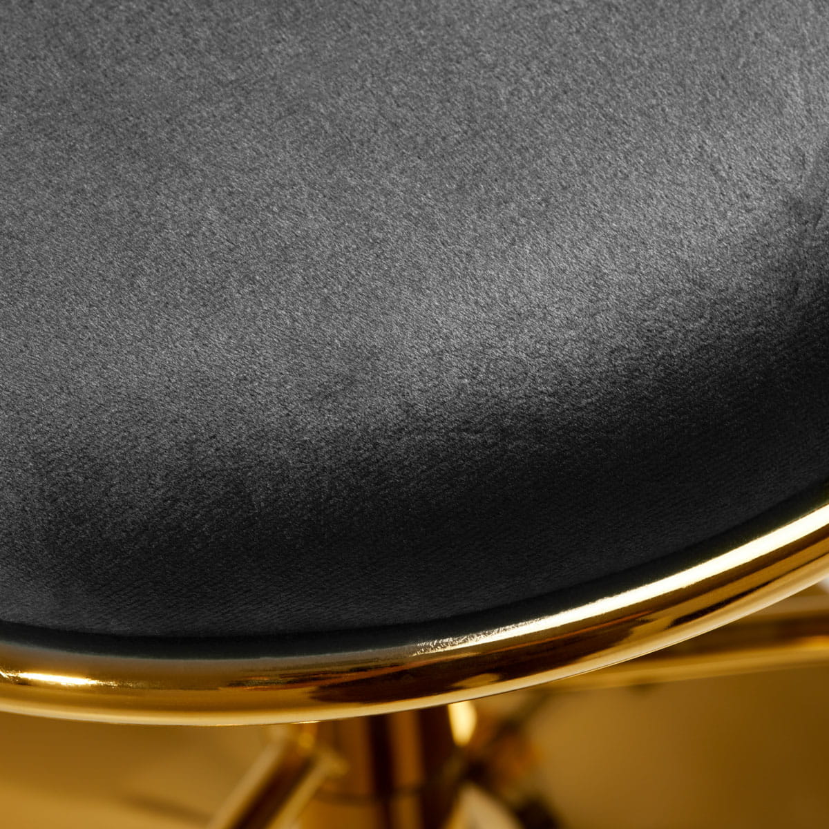 Przyjemne w dotyku, welwetowe obicie w odcieniach szarości nadaje hokerowi wyjątkowego charakteru, a estetycznie przeplatany materiał na oparciu podkreśla unikatowy wygląd mebla. Wykończenie sprawia, że mebel zapadnie w oko. Stelaż w odcieniach złota dodaje elegancji i prestiżu, idealnie komponując się z aksamitem.
