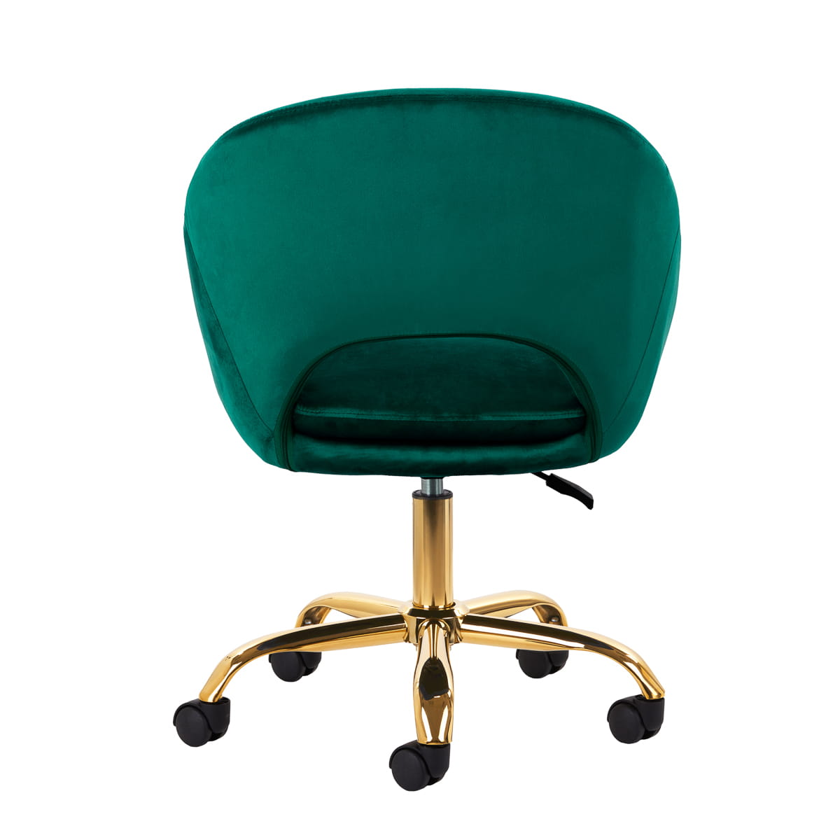 Proste wykończenie sprawia, że mebel wpada w oko. Przyjemne w dotyku, welwetowe obicie w odcieniach zieleni nadaje mu wyjątkowego charakteru. Podstawa w odcieniach złota dodaje elegancji, idealnie komponując się z welwetem, a funkcjonalne koła zapewniają mobilność, ułatwiając przestawianie krzesła oraz poruszanie się po salonie w trakcie pracy. Estetyka wykonania, komfort użytkowania oraz ergonomicznie wyprofilowane oparcie sprawiają, że krzesło spełni wymagania nawet najbardziej wymagających użytkowników.