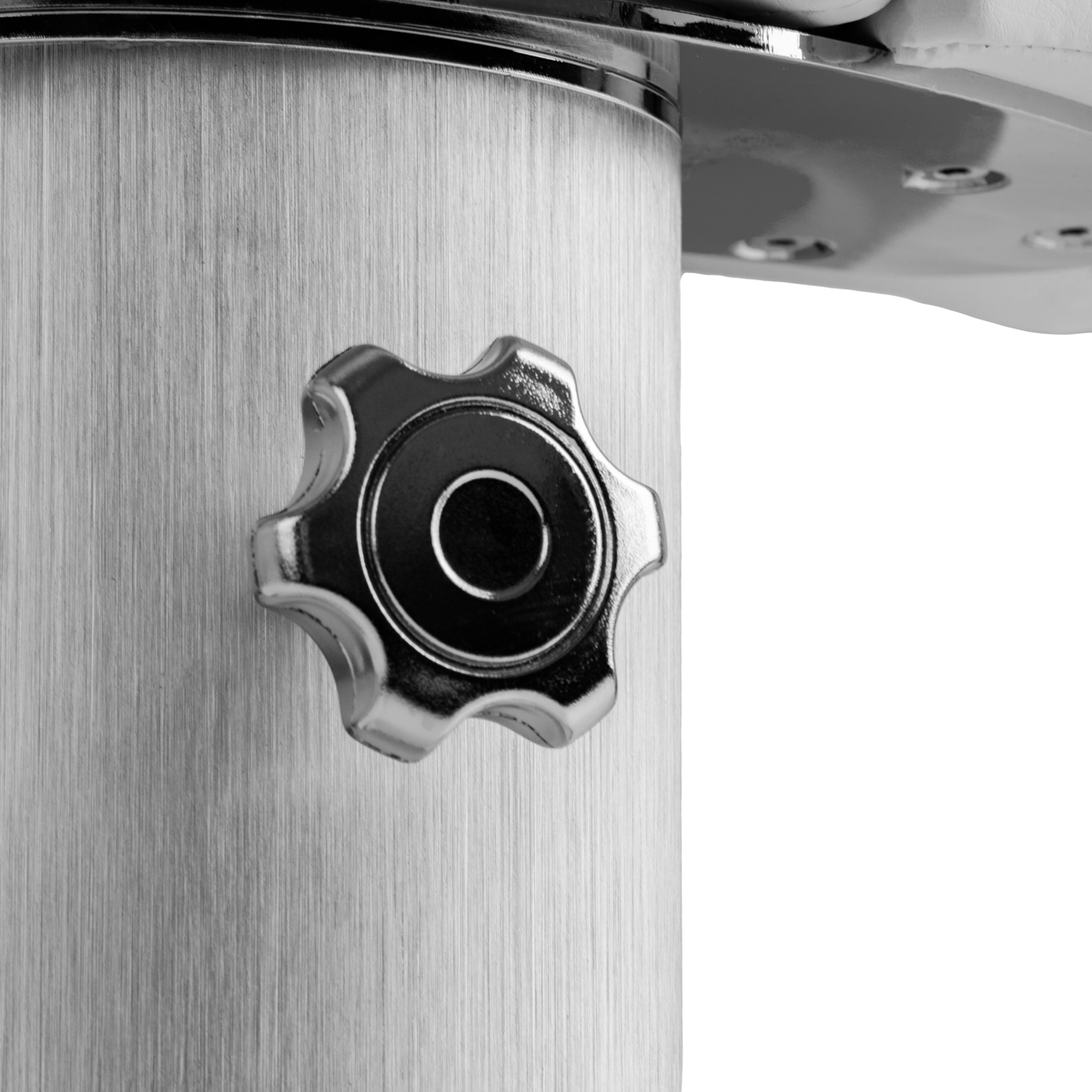 Regulowany wózek z podnóżkiem pozwala na dopasowanie pozycji do potrzeb klienta oraz osoby wykonującej zabieg. Manualna regulacja wysokości do 20 cm, odporne na wilgoć obicie ze skóry syntetycznej oraz stabilne, gumowe kółka z blokadą zapewniają komfort, mobilność i dobrą organizację stanowiska pracy.