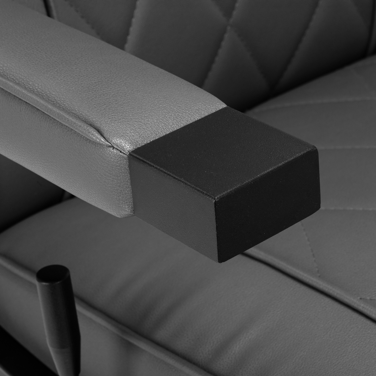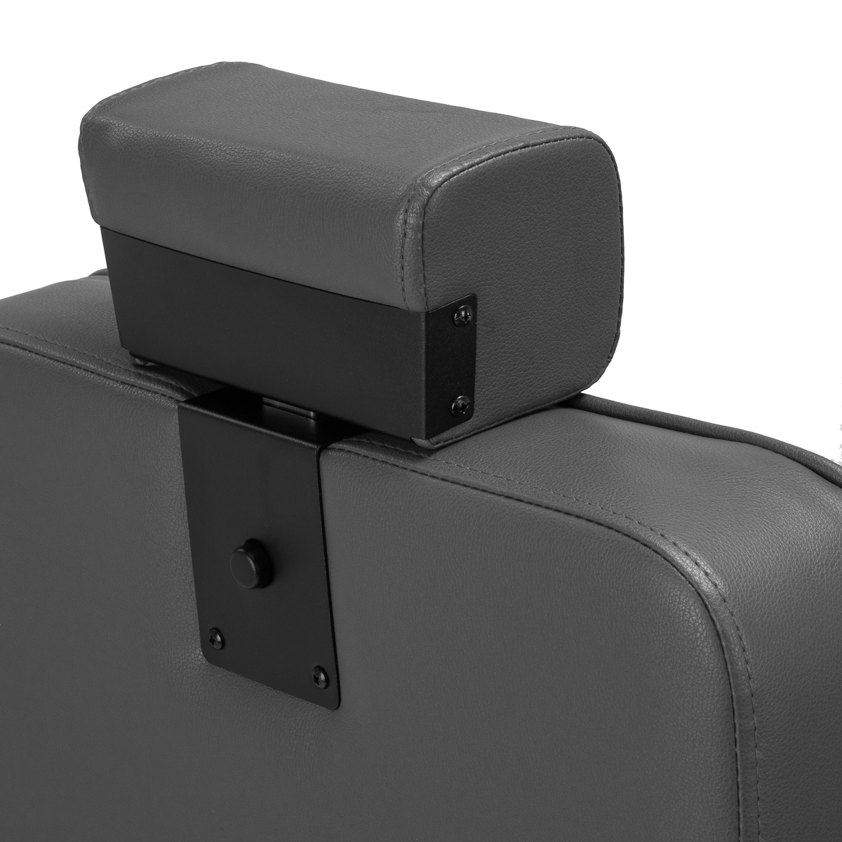 Solidna konstrukcja okrągłej podstawy zapewnia stabilność oraz wysoki komfort użytkowania. Wypełnienie siedziska z odpornej na odkształcenia pianki oraz obicie wykonane z przyjemnej w dotyku skóry syntetycznej o matowym wykończeniu zapewniają trwałość mebla oraz jego komfortowe użytkowanie przez długi czas. Stylowe przeszycia na tapicerce nadają fotelowi charakteru, przywodząc na myśl design motoryzacyjny, co podkreśla jego elegancki wygląd. Sprawiają również, że sprzęt jest odporny na wilgoć, wytrzymały oraz łatwy do czyszczenia. Pokrycie w odcieniach szarości nadaje mu wyjątkowego charakteru, a minimalistyczny styl pozwala mu wpasować się w wystrój każdego salonu barberskiego.