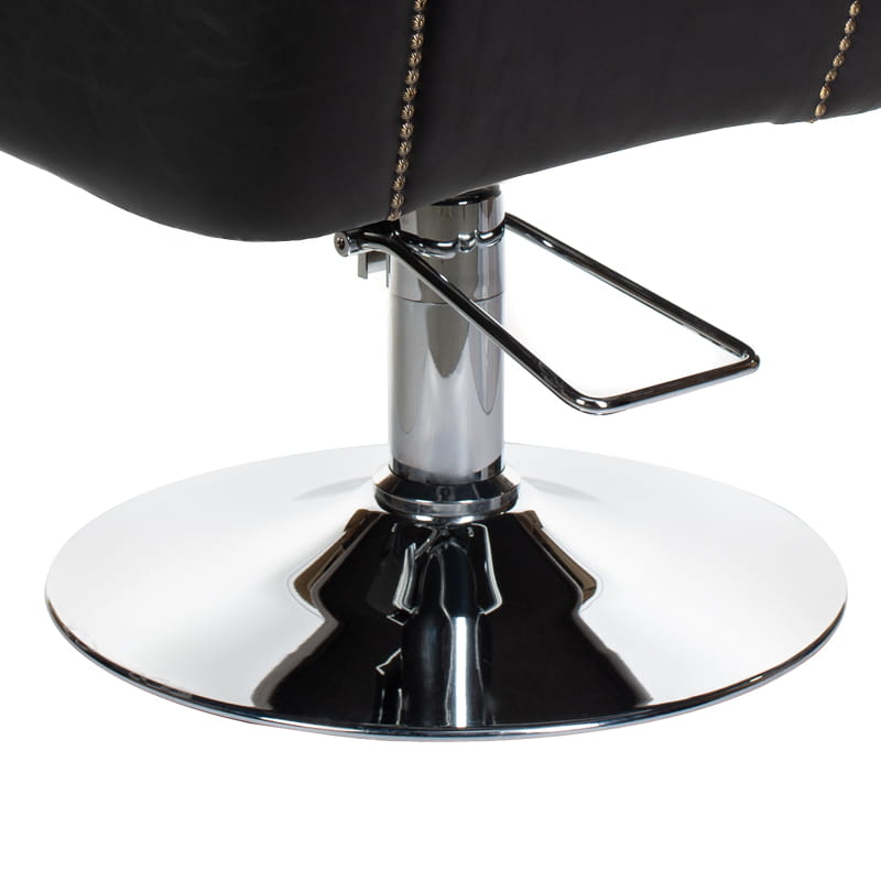 Ciemne pikowane obicie wykonane z wysokiej jakości skóry ekologicznej, chromowana podstawa, szerokie siedzisko oraz oparcie niezwykle wygodne do użytkowania, hydrauliczna regulacja wysokości to atuty modelu fotela fryzjerskiego Alberto BH-8038