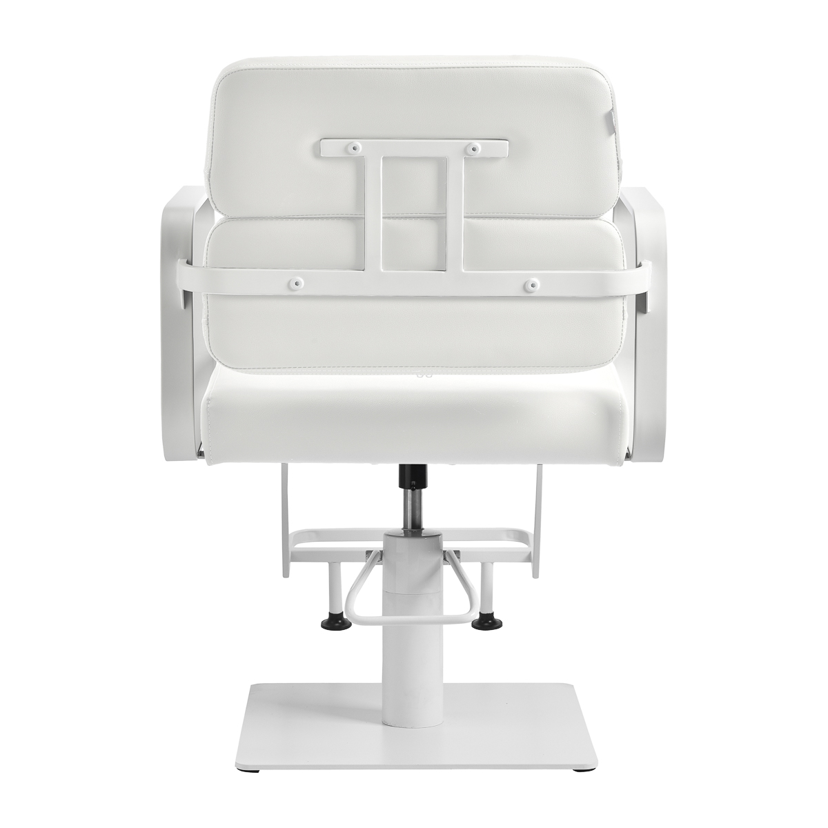 Mechanizm pełnego obrotu, w który jest wyposażony fotel, sprawia, że praca fryzjera staje się bardziej efektywna i wygodna. Solidna, płaska podstawa w kształcie kwadratu gwarantuje stabilność w trakcie użytkowania. Matowo wykończona, gładka powierzchnia nadaje elementowi elegancki wygląd i sprawia, że ten jest łatwy do utrzymania w czystości. Wygodne siedzisko z wypełnieniem z pianki zapewnia wysoki komfort użytkowania, nawet podczas wielogodzinnych zabiegów. Geometryczne, metalowe podłokietniki pozwalają na prawidłowe ułożenie barków klienta – sprawia to, że nie chowa głowy w ramionach ani się nie garbi – co wyraźnie ułatwia wykonywanie precyzyjnych zabiegów, w tym strzyżenia. Dedykowany do tego modelu stylowy podnóżek zapewnia stabilne oparcie dla stóp użytkownika.