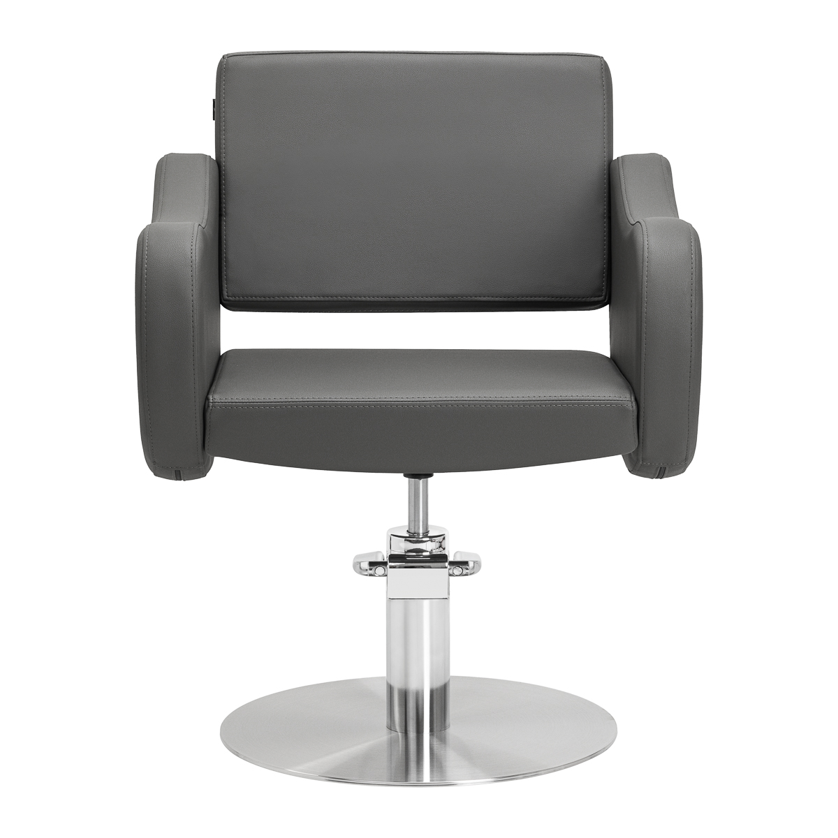 Siedzisko zostało zaprojektowane z myślą o komforcie nawet podczas długotrwałych zabiegów. Podłokietniki, umieszczone na ergonomicznej wysokości, wspierają prawidłową postawę klienta, co ułatwia precyzyjne strzyżenie i stylizację. Praktycznym atutem fotela jest otwór pomiędzy oparciem a siedziskiem – ułatwia on utrzymanie czystości, pozwalając szybko i skutecznie usunąć włosy z trudno dostępnych miejsc. Dzięki temu przygotowanie stanowiska na kolejnego klienta przebiega sprawnie i higienicznie.
