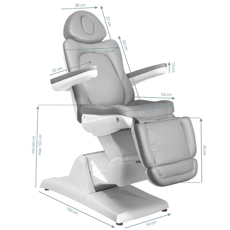 Nowoczesny fotel kosmetyczny regulowny elektrycznie, zapewniający komfort podczas zabiegu nie tylko pacjentom, ale i osobom wykonującym zabieg.