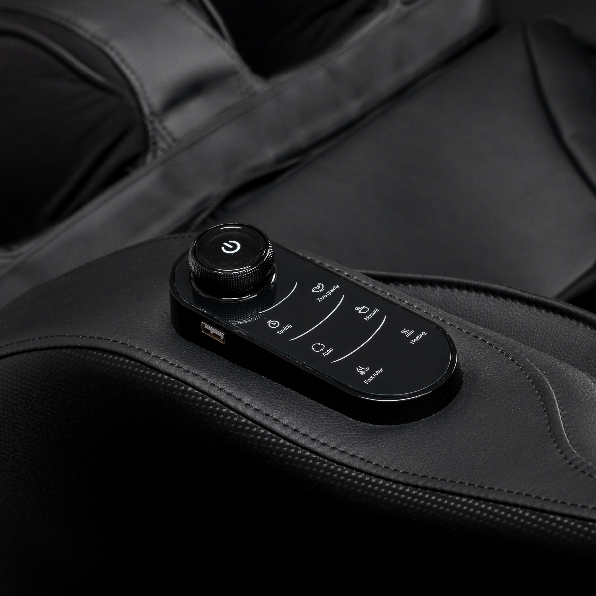 Dla zwiększenia wygody fotel wyposażono w dodatkowy zestaw przycisków sterujących umieszczonych na lewym podłokietniku. Wbudowany podręczny pilot zapewnia szybki dostęp do najważniejszych funkcji bez konieczności sięgania po główny panel. Dzięki temu użytkownik może w prosty sposób zmieniać rodzaj masażu, uruchamiać masaż stóp, aktywować funkcję podgrzewania oraz funkcję Zero Gravity, co pozwala w pełni kontrolować komfort i intensywność relaksu w każdej chwili.