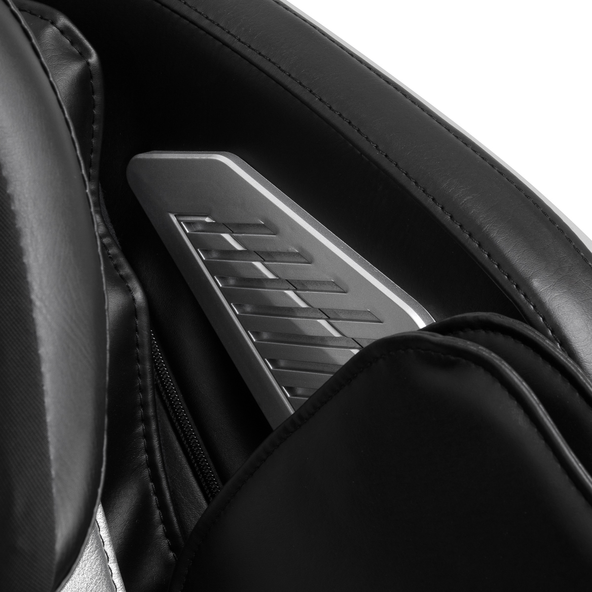 Dla jeszcze większej wygody fotel wyposażono w dodatkowy zestaw przycisków sterujących umieszczonych na lewym podłokietniku. Wbudowany podręczny pilot umożliwia szybki dostęp do najważniejszych funkcji bez konieczności sięgania po główny panel. Użytkownik może z łatwością zmieniać rodzaj masażu, uruchamiać masaż stóp oraz aktywować funkcję Zero Gravity – wszystko z myślą o maksymalnym komforcie i relaksie.
