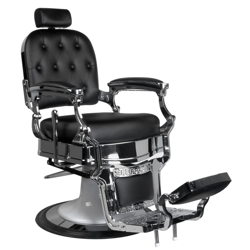 Solidna konstrukcja podstawy zapewnia stabilność oraz wysoki komfort użytkowania. Siedzisko wypełnione trwałą, odporną na odkształcenia pianką oraz obite przyjemną w dotyku skórą syntetyczną odporną na ścieranie i łatwą w pielęgnacji zapewnia trwałość mebla oraz wygodę na najwyższym poziomie. Zastosowane materiały sprawiają, że fotel jest odporny na wilgoć, wytrzymały i łatwy do czyszczenia. Stylowe obicie w odcieniach czerni, ozdobne pikowanie z guzikami na oparciu oraz elegancki podnóżek nadają fotelowi wyjątkowego charakteru. Jego design, inspirowany stylem vintage, doskonale wpisuje się w klimat klasycznych salonów barberskich, podkreślając ich niepowtarzalną atmosferę. Dopracowane detale, oryginalna tekstura tapicerki i masywna podstawa zapewniają nie tylko estetykę, ale także maksymalną stabilność. To połączenie elegancji i funkcjonalności, które spełni oczekiwania nawet najbardziej wymagających profesjonalistów.