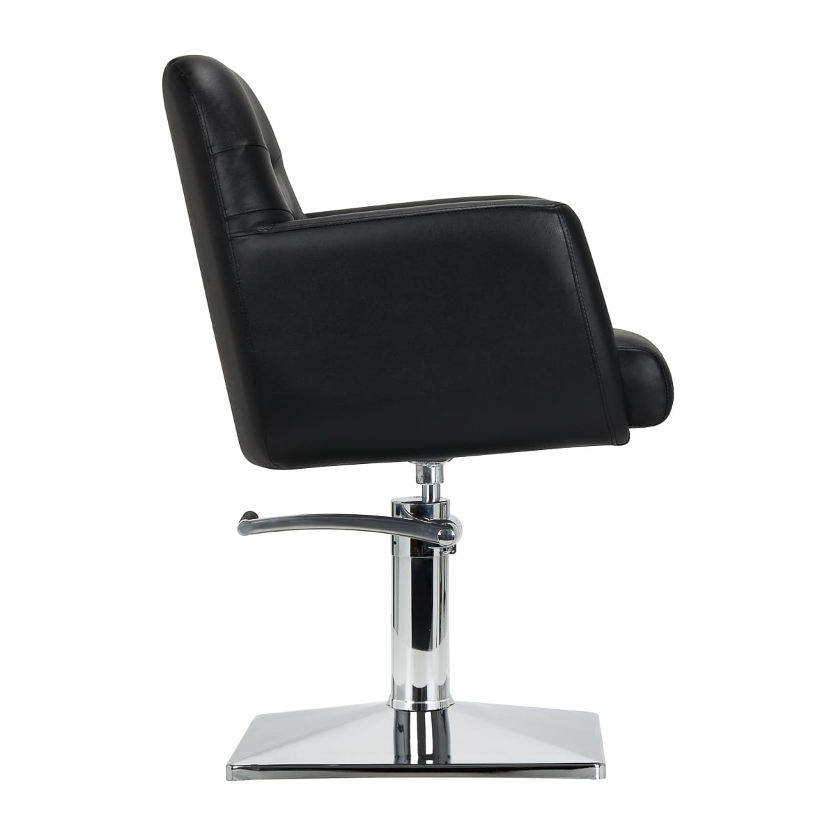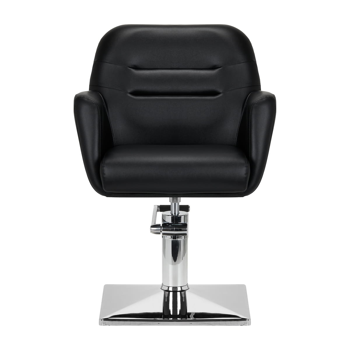 Solidna podstawa w kształcie prostokąta gwarantuje stabilność w trakcie użytkowania. Gładka powierzchnia o lustrzanym wykończeniu sprawia, że element ten jest łatwy do utrzymania w czystości. Siedzisko z wypełnieniem z pianki zapewnia wysoki komfort użytkowania oraz wygodę nawet podczas wielogodzinnych zabiegów. Mechanizm pełnego obrotu sprawia, że praca fryzjera staje się bardziej efektywna i wygodna. Podłokietniki umiejscowione na odpowiedniej wysokości pozwalają na prawidłowe ułożenie barków klienta – sprawia to, że nie chowa głowy w ramionach ani się nie garbi – wyraźnie ułatwiając precyzyjne wykonywanie zabiegów, w tym strzyżenia.