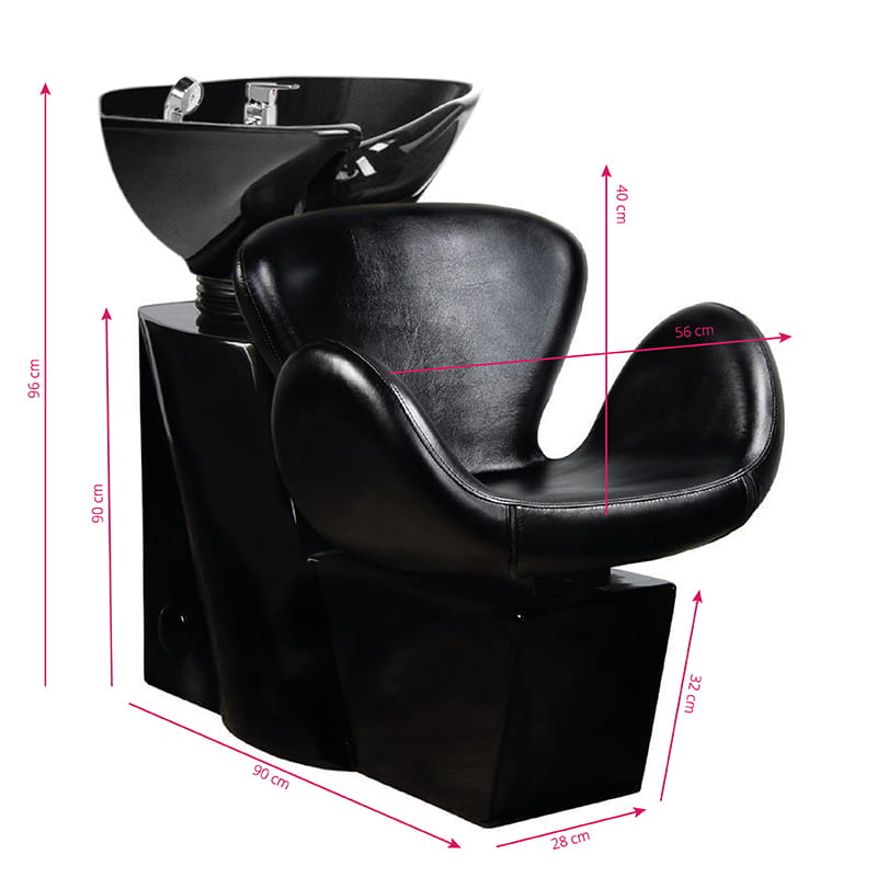 Profesjonalna myjnia fryzjerska -stabilna, niezwykle wygodna, solidnie wykonana. Nowoczeny design czyni z niej piękne dopełnienie wyposażenia nowoczesnego salonu fryzjerskiego. Siedzisko o opływowym kształcie, wykonane z wysokiej jakości łatwej w pielęgnacji ekoskóry. Silikonowa podkładka pod głowę stabilizuje głowę klienta i pozwala na jej wygodne ułożenie na myjce. Misa myki w kolorze białym, z możliwością regulacji swojego nachylenia. Myjnia w kolorze czarnym.