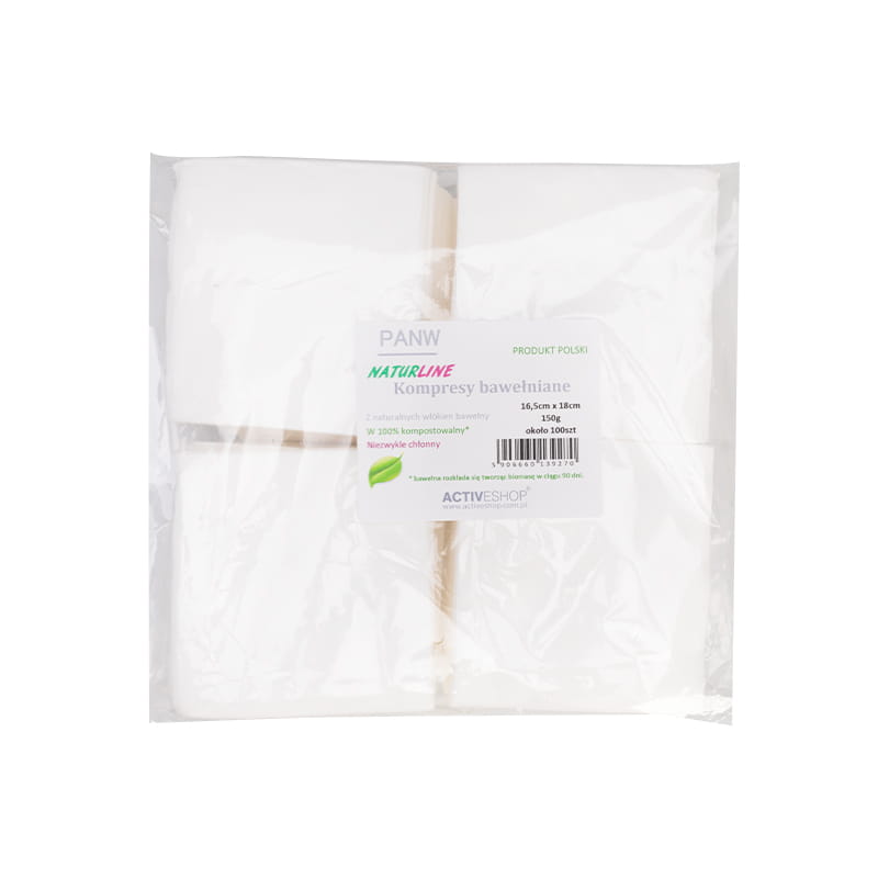 Kompresy bawełniane dzięki praktycznemu rozmiarowi mogą zastąpić płatki kosmetyczne. Kompresy nie rozwarstwiają się, ani nie pylą po namoczeniu, co pozwala na bezpieczne użytkowanie. Są miękkie- idealne do delikatnej skóry twarzy.