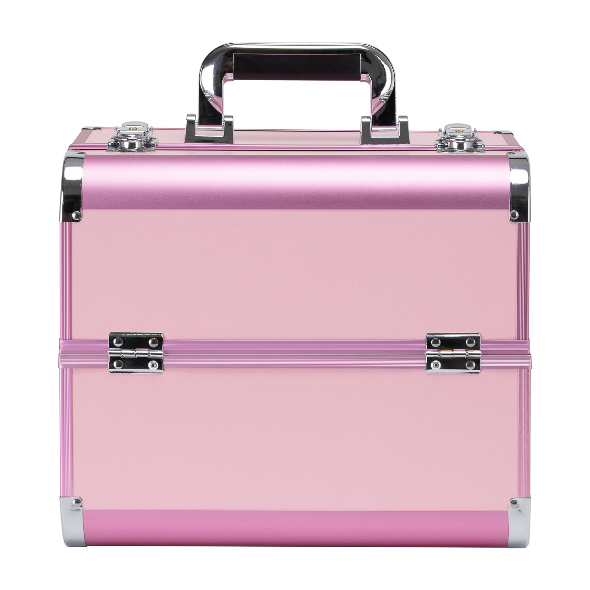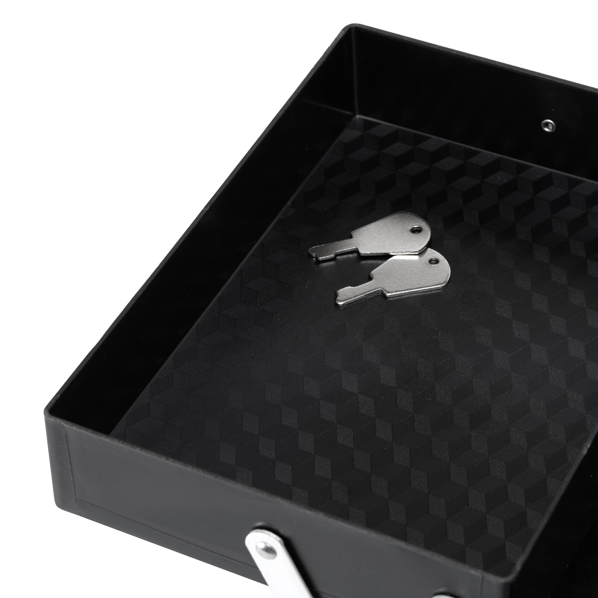 Nowoczesny design z gładkim wykończeniem ścianek w odcieniach różu z metalicznymi akcentami dodaje elegancji. Rączka ułatwia transport, co jest szczególnie ważne dla mobilnych stylistów. Wykonany z wytrzymałych, odpornych na uszkodzenia materiałów zapewnia komfort użytkowania na co dzień. Solidne zamknięcie na zatrzaski z kluczykiem zapewnia ochronę zawartości, a lekka, trwała konstrukcja sprawia, że kuferek jest łatwy do przenoszenia.