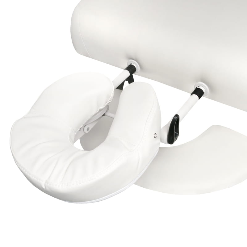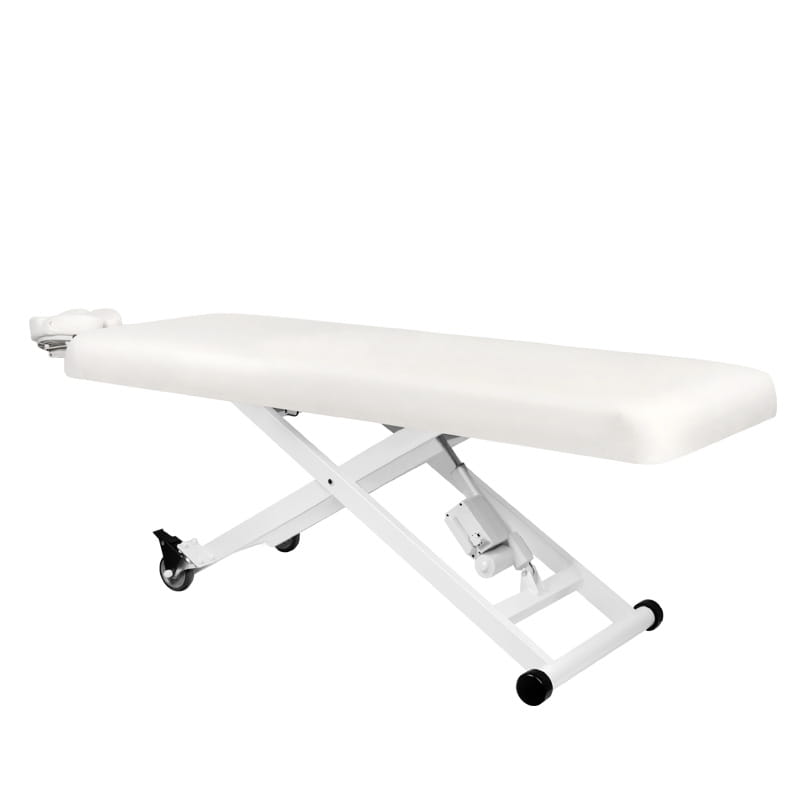 Leżanka wyposażona w 1 silnik dzięki temu wysokość regulowana jest elektrycznie. Zagłówek stanowi zdejmowalna poduszka z otworem odpowietrzającym.