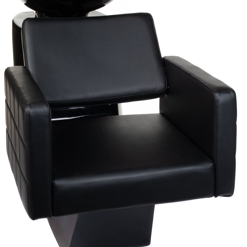 Przyjrzyjmy się najpierw fotelowi. Jest bardzo elegancki, a obicie wykonane z wysokiej jakości skóry ekologicznej przyciąga wzrok. Co równie istotne fotel jest bardzo wygodny. Wydłużone siedzenie pozwala wspaniale się zrelaksować podczas masażu lub mycia głowy. Sama myjnia wyróżnia się stabilnością i solidnością konstrukcji.