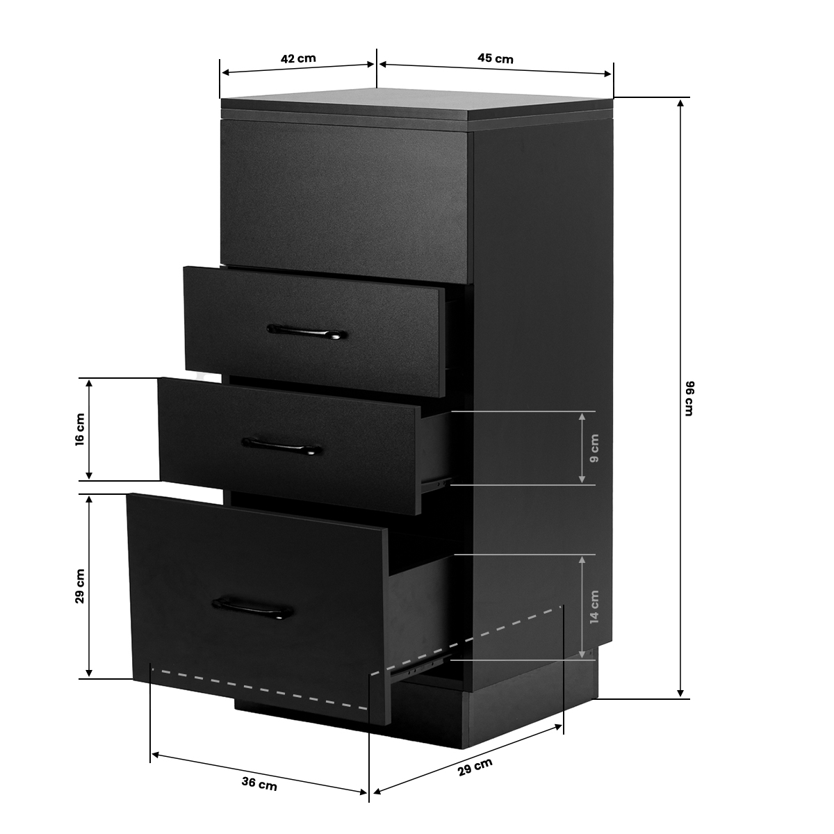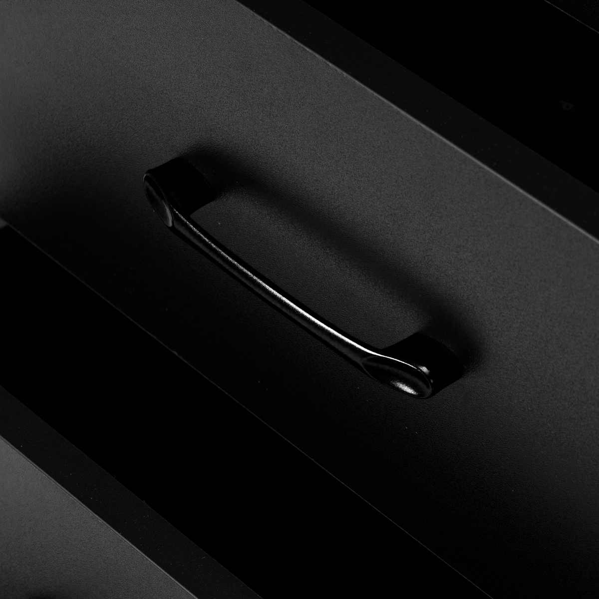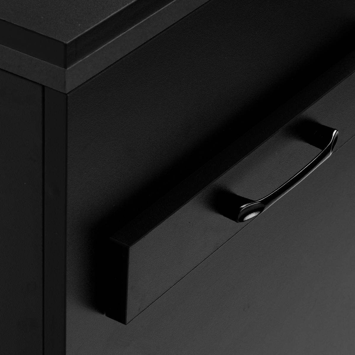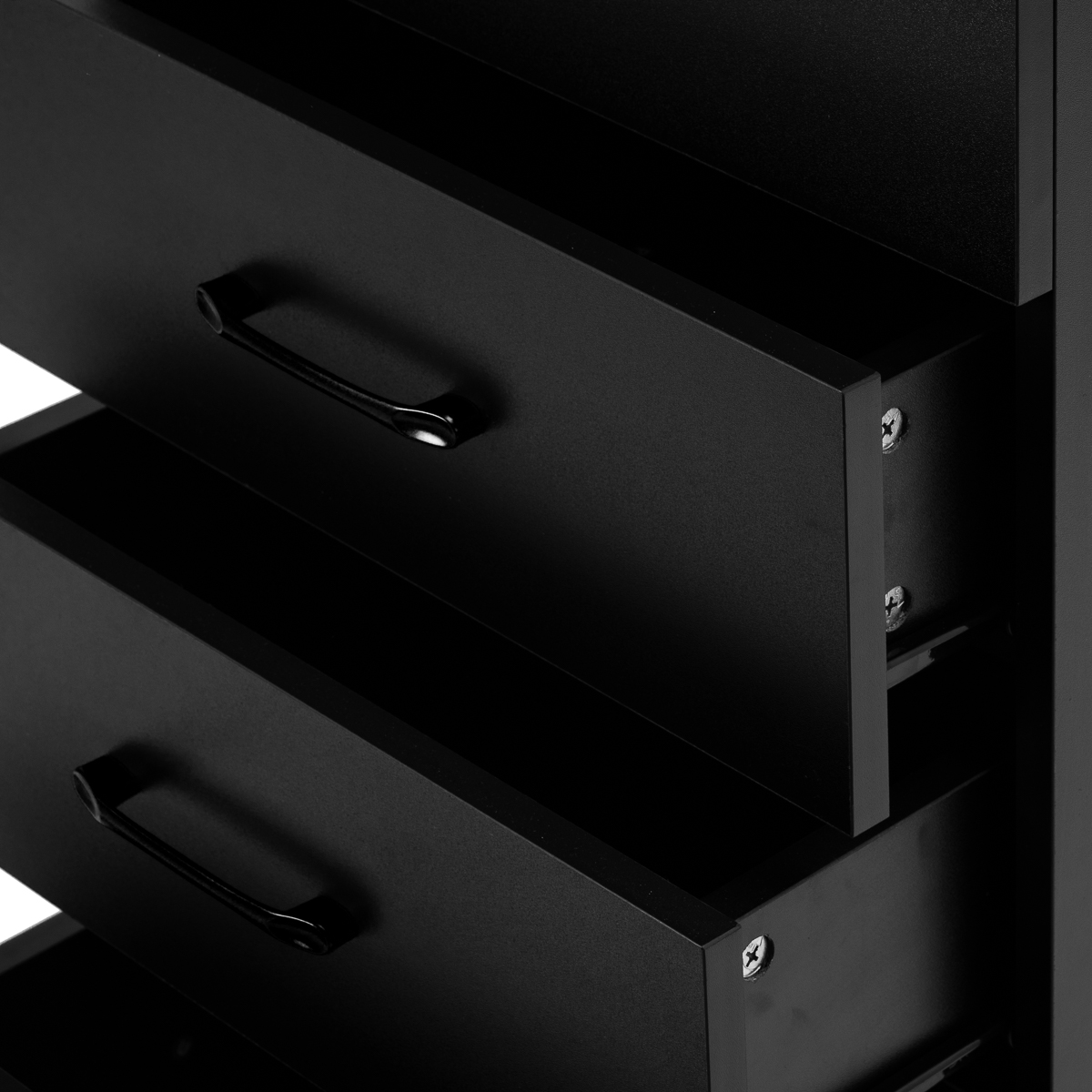 Klasyczna czerń nadaje pomocnikowi nowoczesnego, prestiżowego charakteru, który świetnie dopasuje się zarówno do minimalistycznych, jak i bardziej wyrazistych aranżacji. Solidna konstrukcja zapewnia stabilność, a gładka powierzchnia ułatwia utrzymanie mebla w czystości. Czarne uchwyty nie tylko podkreślają elegancki design, ale także zapewniają wygodne otwieranie każdej z szuflad. To praktyczne rozwiązanie do salonu fryzjerskiego, w którym liczy się porządek, wygodny dostęp do narzędzi oraz estetyka stanowiska pracy.