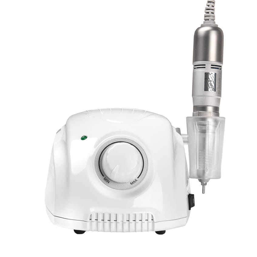 Regulacja prędkości przy użyciu pokrętła jest możliwa do 30 000 obrotów na minutę, co pozwala na dostosowanie do indywidualnych potrzeb, a co za tym idzie komfortowe wykonywanie szerokiej gamy zabiegów. Dodatkowo dioda kontrolna świeci w kolorze zielonym, ułatwiając rozpoznanie, czy frezarka pracuje na minimalnych obrotach. Praca z urządzeniem jest wyjątkowo łatwa, efektywna oraz intuicyjna, co zostanie docenione również przez bardziej wymagających użytkowników.
