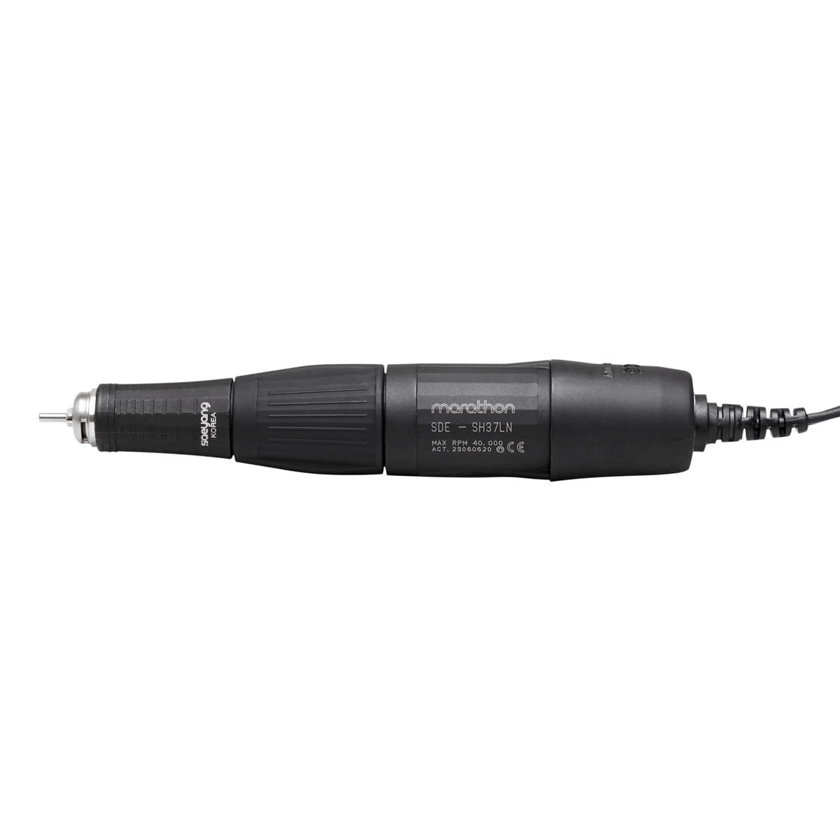 Funkcjonalna, precyzyjna głowica SH37LN doskonale leży w ręce, gwarantując wysoki komfort pracy. Osiąga maksymalną prędkość aż 40 000 obrotów na minutę, ułatwiając użytkowanie. Wyposażona jest w prosty w obsłudze system Twist-Lock, który pozwala na szybką wymianę frezów. Dzięki temu praca staje się wyjątkowo łatwa oraz intuicyjna, co zostanie docenione również przez bardziej wymagających użytkowników. Pióro frezarki jest odpowiednio wyważone i ergonomicznie wyprofilowane, a jego drgania zostały ograniczone, co sprawia, że nawet wielogodzinna praca z frezarką nie męczy nadmiernie ręki. Plastikowa obudowa ogranicza przepływ ciepła, dzięki czemu nagrzewanie urządzenia nie jest odczuwalne.
