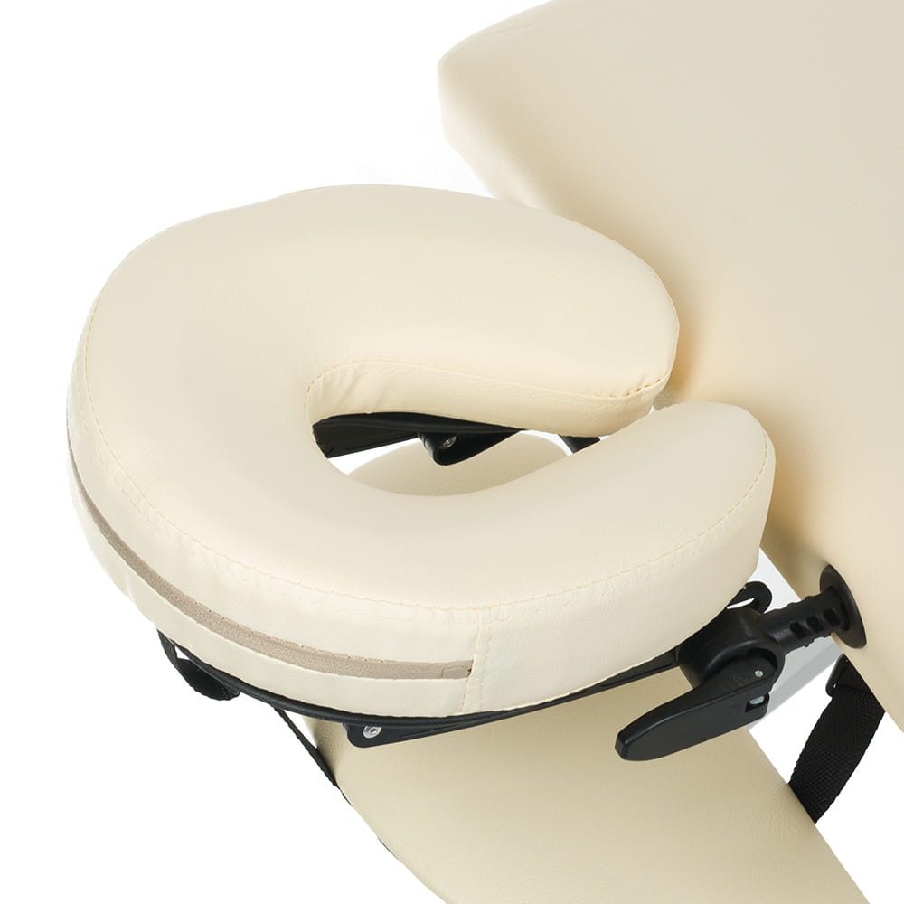 Zintegrowany zagłówek z otworem na twarz oraz podłokietniki zapewniają pacjentowi pełen komfort podczas masażu, umożliwiając mu przyjęcie najbardziej wygodnej pozycji. Dodatkowe poduszki mogą być łatwo dopasowane do indywidualnych potrzeb, co zwiększa wygodę użytkowania.