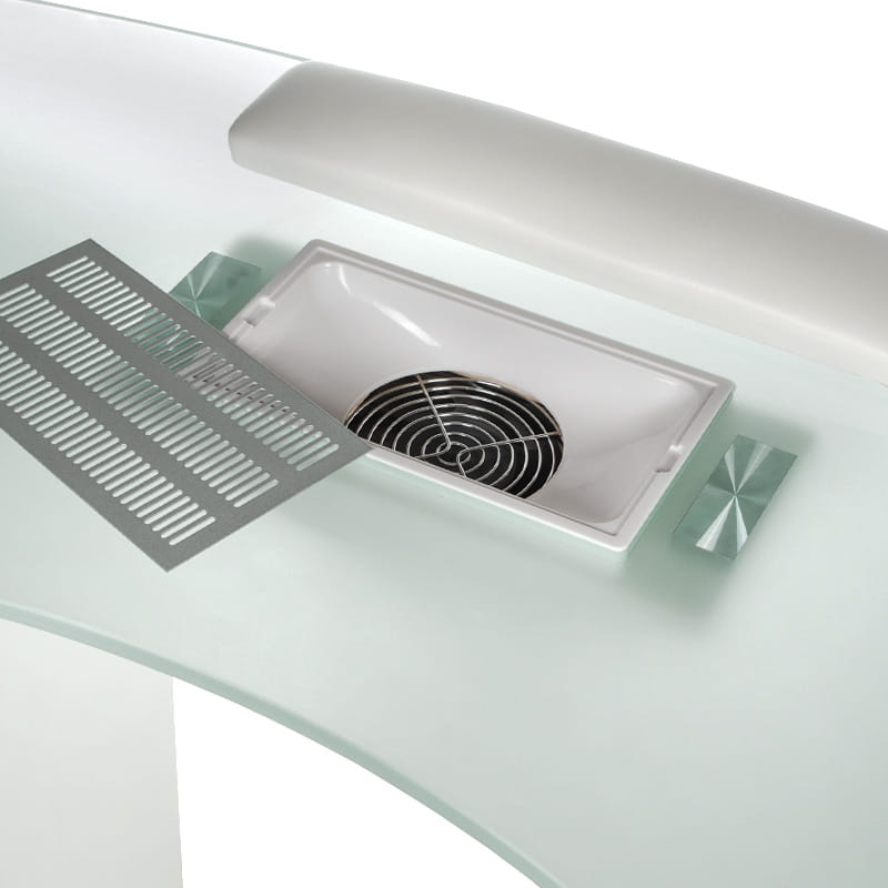 Proponujemy bardzo elegancki i funkcjonalny stolik z eleganckim szklanym czarnym blatem i gotowym otworem na pochłaniacz. Meble do salonów kosmetycznych, aby zapewnić komfortowe warunki pracy muszą być maksymalnie użyteczne. Stolik do manicure z otworem na pochłaniacz BD-3453+O jest mobilny, posiada głębokie szafki i praktyczne szuflady. Zestaw uzupełnia wygodna poduszka zabiegowa.  Solidna konstrukcja, efektowny design to znak rozpoznawczy Beauty System. Wybierz stolik do manicure z otworem montażowym BD-3453+O  z roczną gwarancją!