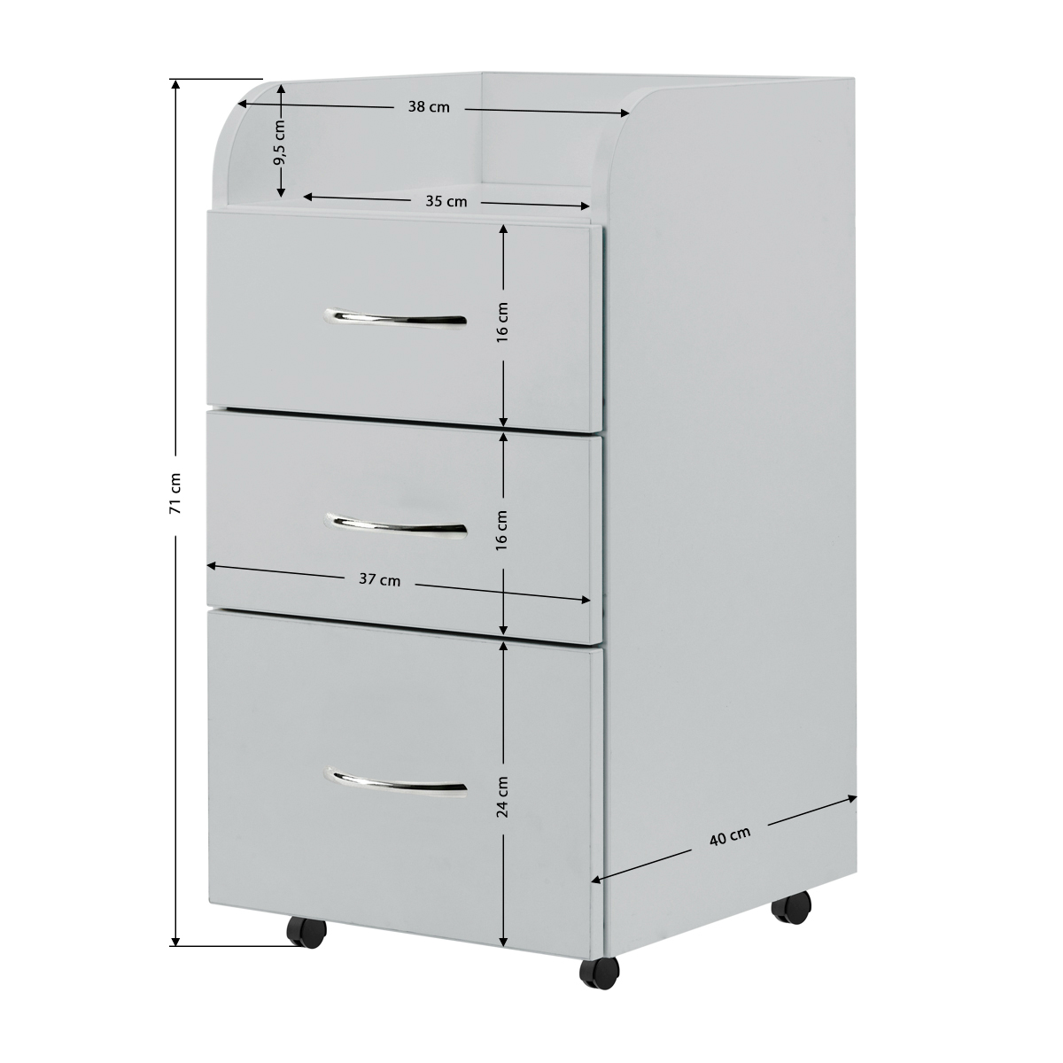 Trzy szuflady o zróżnicowanych wymiarach pozwalają na wygodne uporządkowanie akcesoriów, narzędzi oraz produktów kosmetycznych. Mobilność mebla zapewniają praktyczne kółka, w tym dwa z blokadą, które ułatwiają przestawianie szafki i umożliwiają jej stabilne ustawienie w wybranym miejscu. Projekt stworzony z myślą o gabinetach podologicznych obejmuje dedykowane miejsce na frezarkę podologiczną z pochłaniaczem, co sprzyja ergonomicznej organizacji stanowiska i podnosi komfort wykonywania zabiegów.
