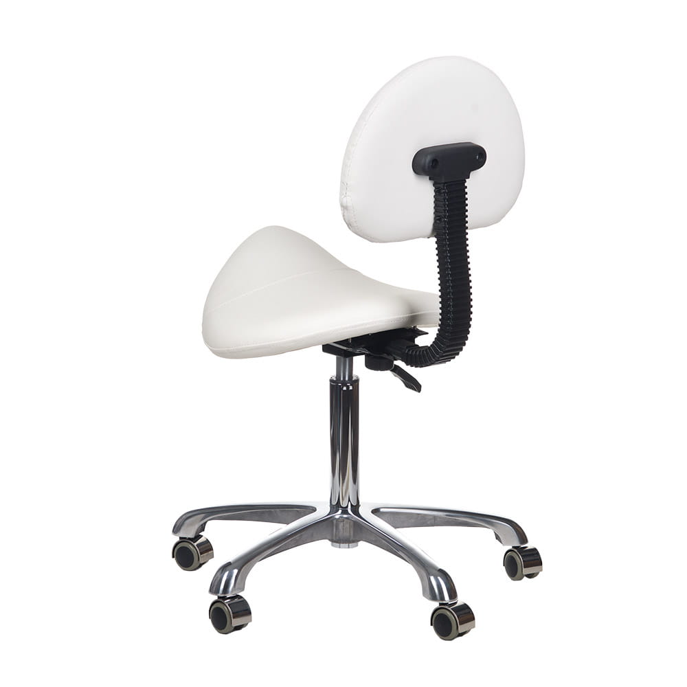 Taboret kosmetyczny BY-8373 posiada doskonale wyprofilowane zarówno siedzisno jak i oparcie. Obicie wykonane z wysokogatunkowej skóry ekologicznej łatwej w utrzymaniu czystości.
