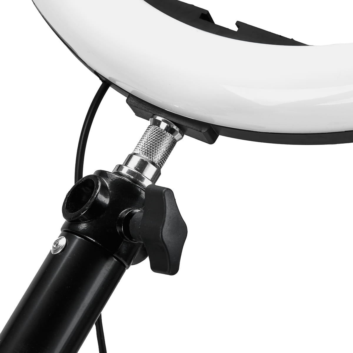 Regulowanej długości, stalowy uchwyt ścienny przeznaczony jest do lamp i ringów świetlnych z gwintami o średnicach 6 mm i 9 mm. Solidny wieszak pozwala dokładnie rozplanować oświetlenie i stabilnie umocować je nad stanowiskiem pracy.