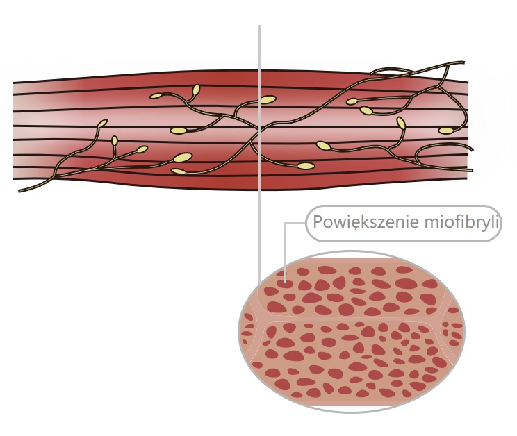 Mięśnie są mocne oraz obwód mięśni jest większy. Miofibryla jest wzmocniona i zwiększona, jej gęstość jest również większa.
